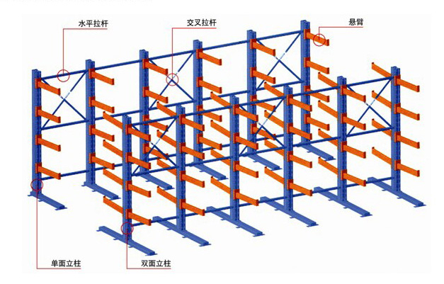 懸臂可以是單面或雙面,懸臂式貨架具有結(jié)構(gòu)穩(wěn)定,載重能力好、空間利用率高等特點(diǎn)。