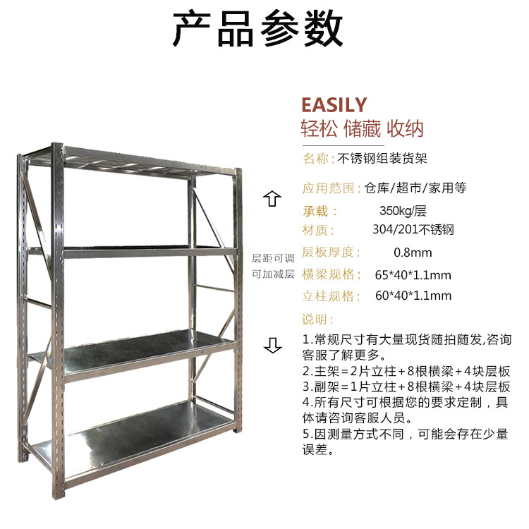 蘇州不銹鋼貨架廠家,不銹鋼制品加工,不銹鋼架子 不銹鋼貨架指用于貨物存儲(chǔ)、展示的各種不銹鋼器具。不銹鋼貨架是一種架式結(jié)構(gòu)物,可充分利用倉(cāng)庫(kù)空間,提高庫(kù)容利用率,擴(kuò)大倉(cāng)庫(kù)儲(chǔ)存能力。
