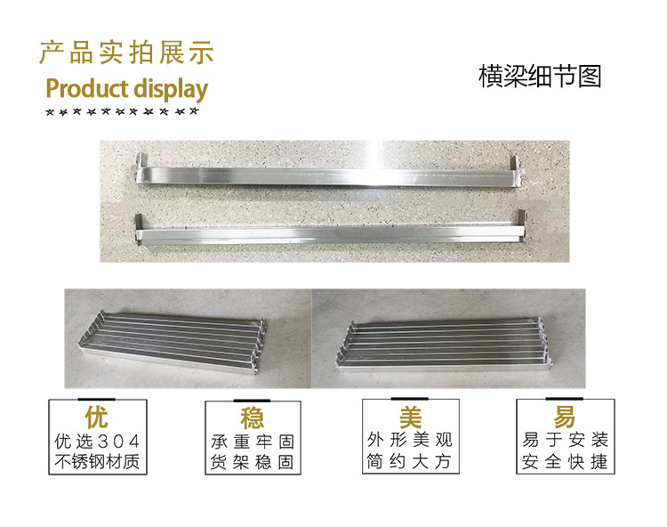 不銹鋼貨架可選用201或304不銹鋼材料、支架采用38*38不銹鋼方通制作。焊接美觀,受重力強(qiáng)。