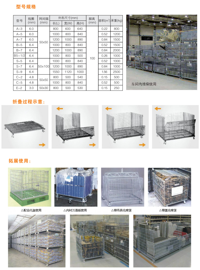 1. 折疊式倉儲(chǔ)籠:折疊式倉儲(chǔ)籠 (也叫蝴蝶籠,倉庫籠等), 具有存放物品容量固定、