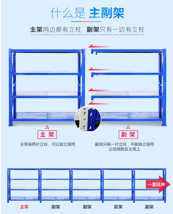 如果是要經(jīng)常移動的貨架,推薦全部使用主架。主副架連接的貨架一定要跟著主架移動。