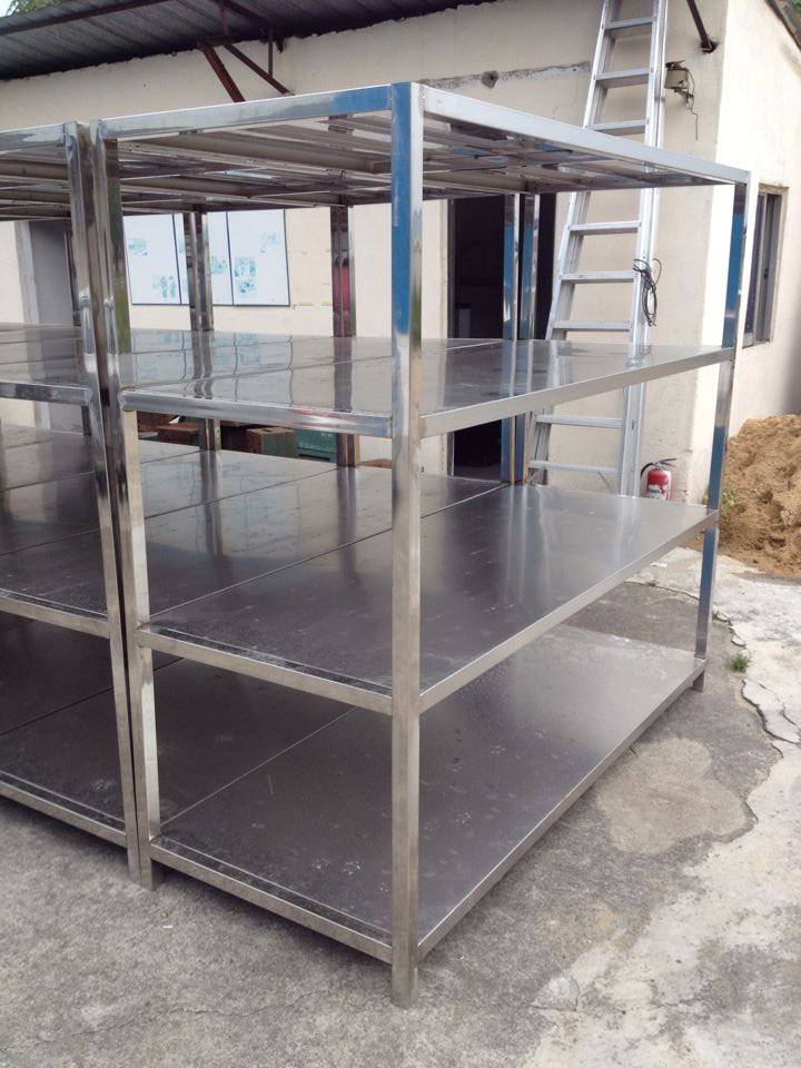 不銹鋼貨架可選用201或304不銹鋼材料、支架采用38*38不銹鋼方通制作。焊接美觀,受重力強(qiáng)。