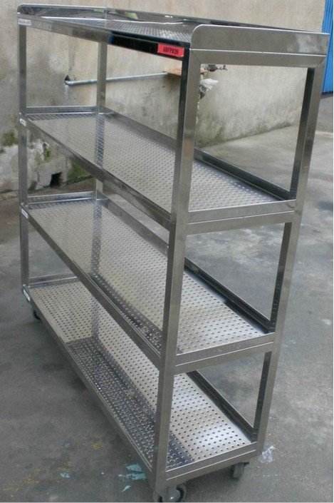 不銹鋼貨架可選用201或304不銹鋼材料、支架采用38*38不銹鋼方通制作。焊接美觀,受重力強。